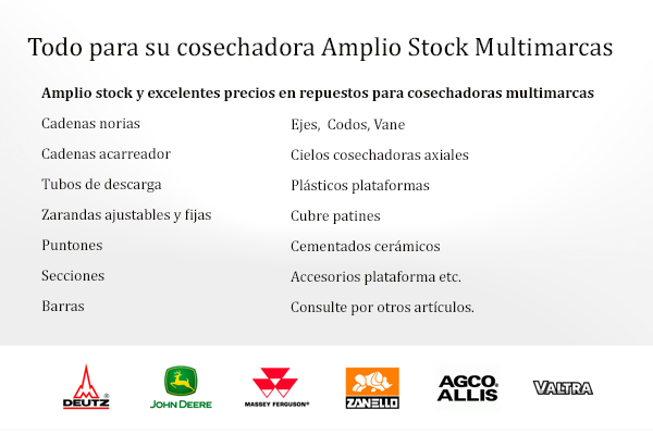 Todo para su cosechadora Amplio Stock Multimarcas